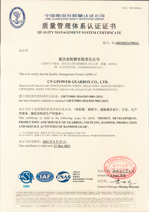 Quality Management System Certificate (2018)